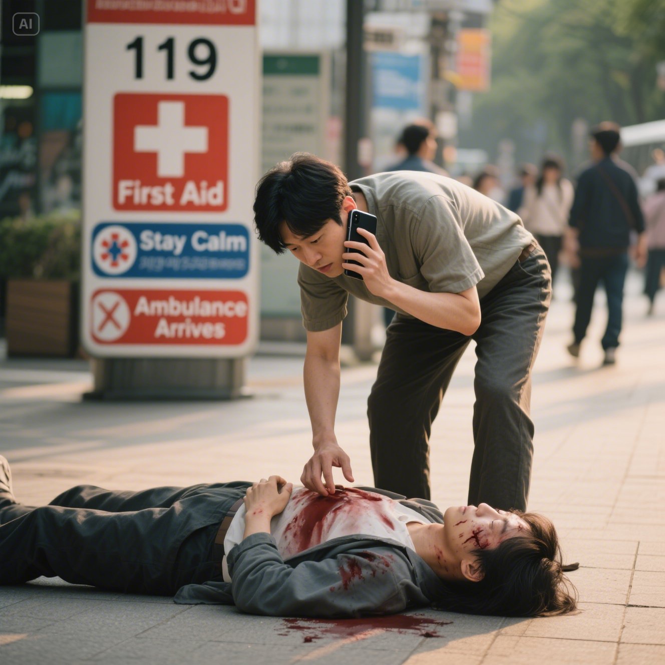 부상이 심각해 보이거나 출혈이 있는 경우, 무리하게 움직이지 말고 119에 연락해서 구급대가 올 때까지 기다려야 해요. 특히 머리나 목, 척추 부상은 절대 움직이면 안 돼요.