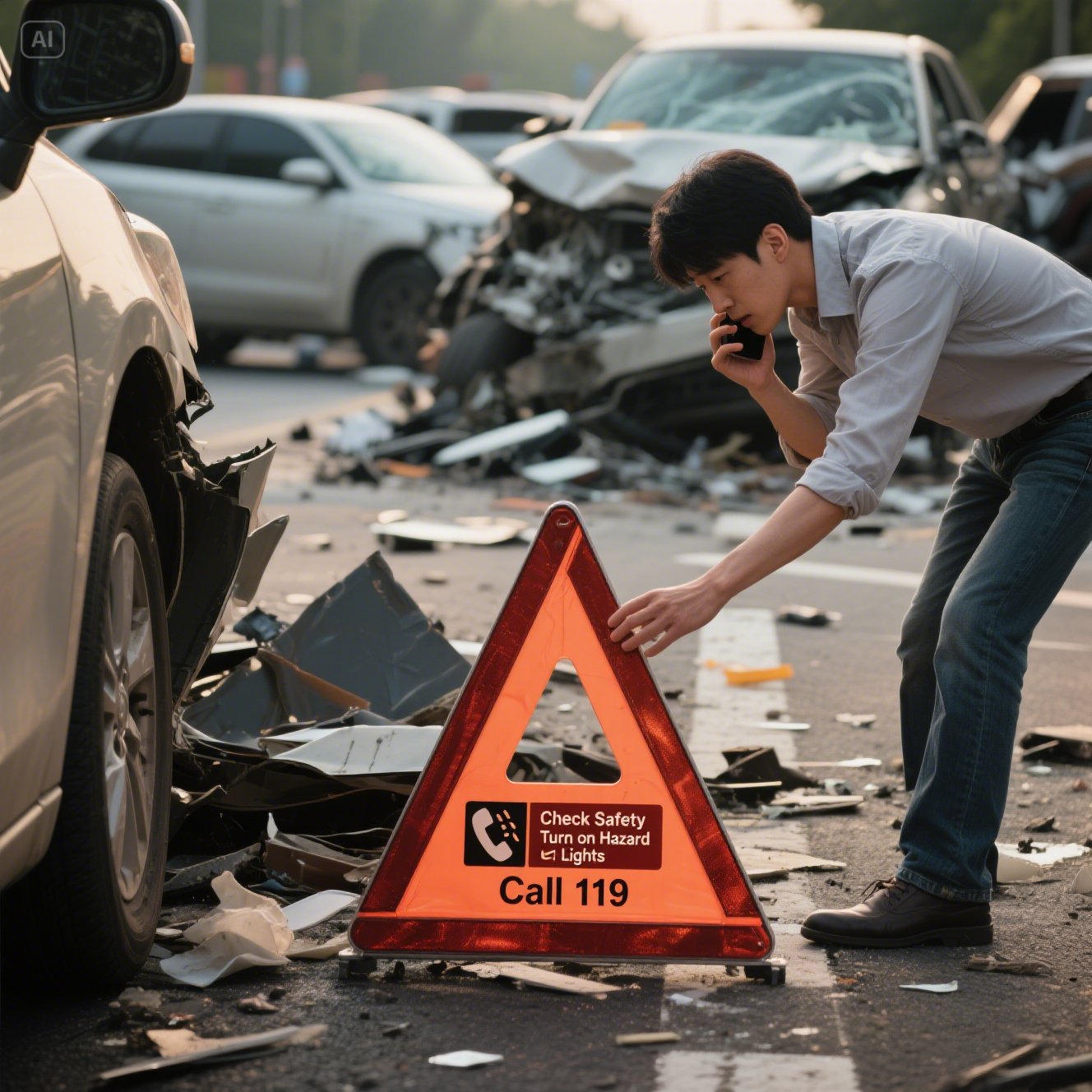 비상등을 켜고 삼각대를 설치한 뒤, 다른 차량들이 사고 현장을 인지할 수 있도록 해주는 게 기본이에요. 만약 밤이라면 손전등이나 스마트폰 불빛을 활용해 시야 확보도 해줘야 해요.