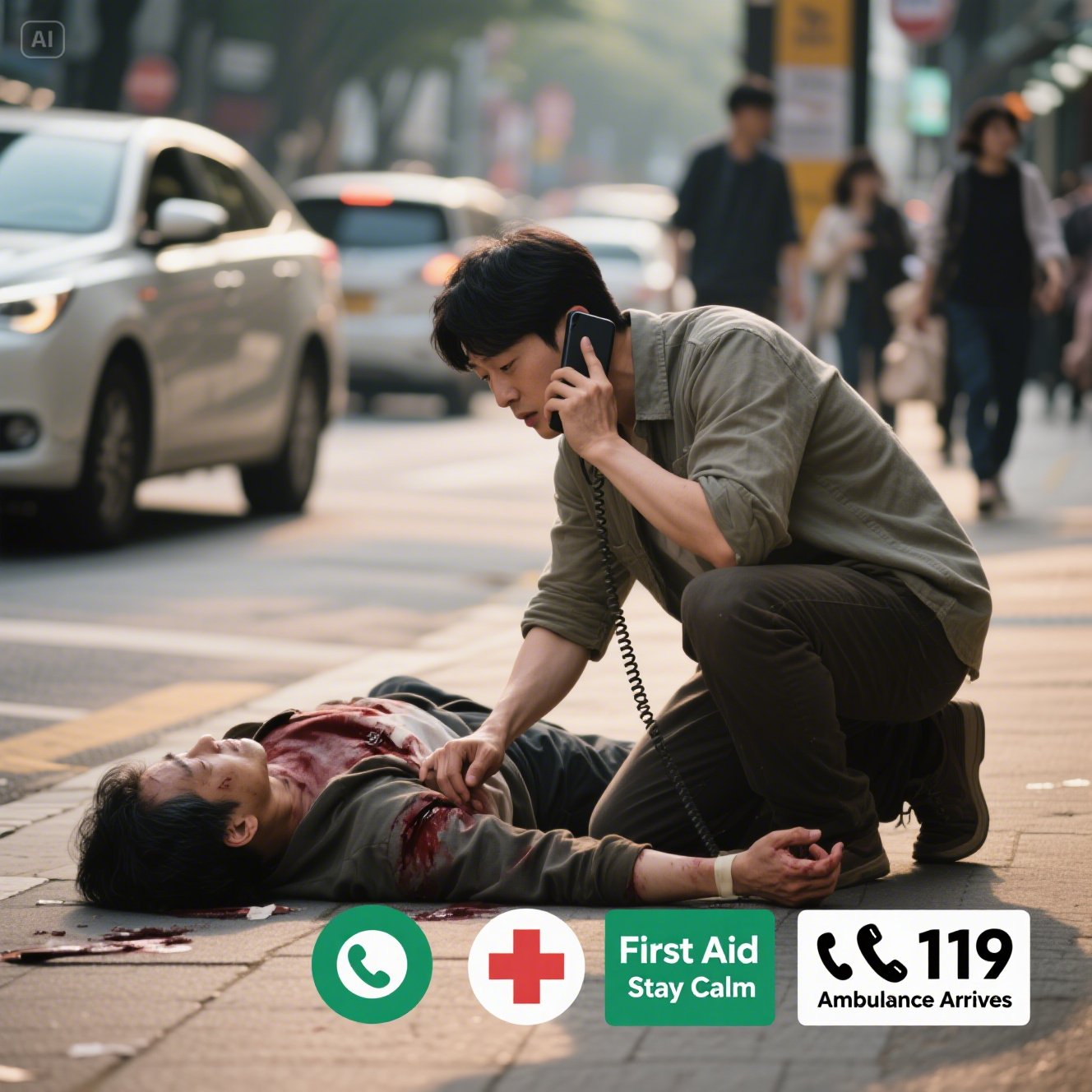 만약 가벼운 찰과상이거나 본인이 직접 움직일 수 있는 경우에는 근처 병원으로 이동하거나 구급차를 타고 응급실에 가는 것이 좋아요. 사고 직후에는 아드레날린이 분비되어 통증이 느껴지지 않기도 하니까요.